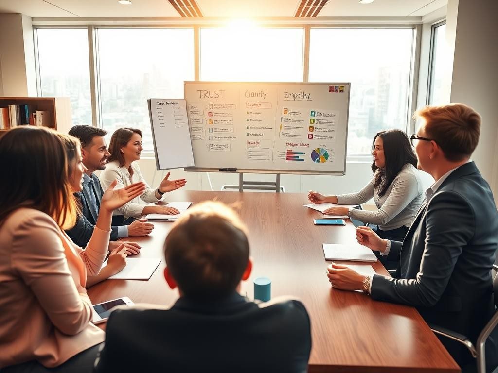 4. Empatía y trabajo en equipo como motor de unión Finalmente, la empatía y el trabajo en equipo consolidan el cuarto pilar del liderazgo. Un líder empático comprende las emociones y perspectivas de los demás, creando un entorno de confianza y respeto. Este enfoque fortalece la colaboración y potencia el desempeño colectivo. Sin empatía, es imposible construir relaciones sólidas dentro de un equipo. Para fomentar esta conexión, un líder puede implementar estrategias como: